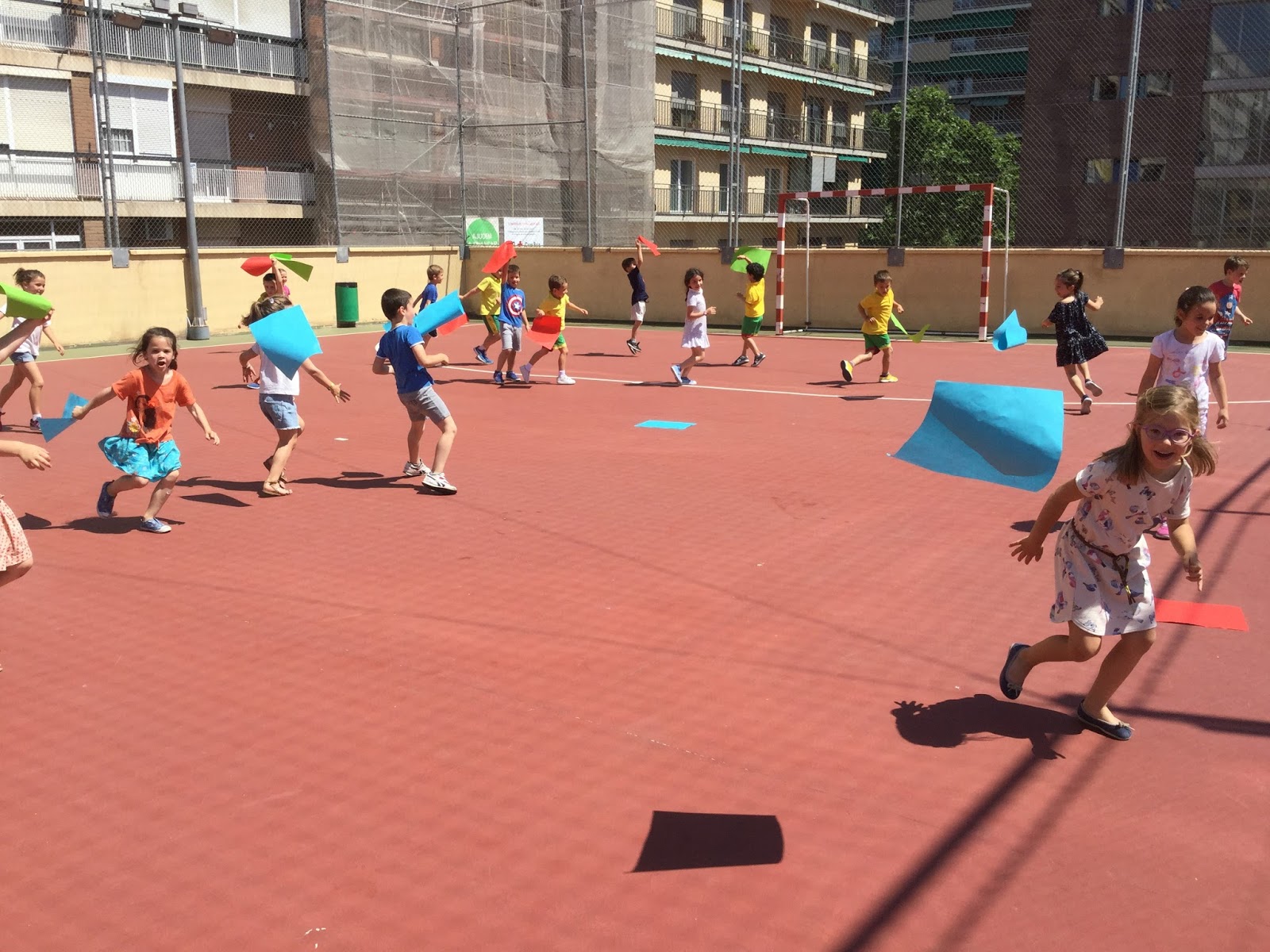 pujat al pati amb fulls de colors i hem jugat amb el vent.
